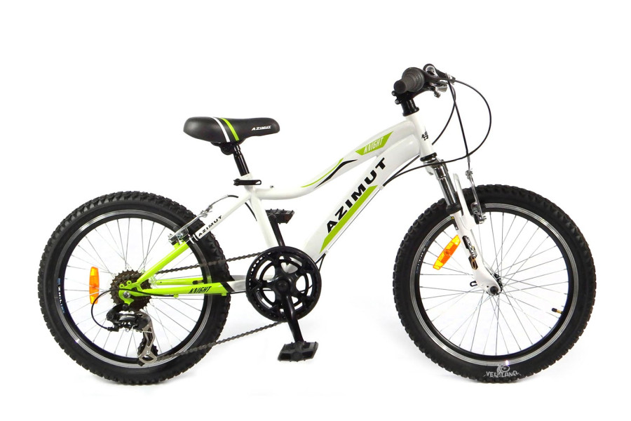 Azimut Knight 20 хоть и маленький, но оборудован, как настоящий взрослый горный велик.Амортизационная вилка Zoom с ходом 40мм для лучшего контроля управления на неровностях и смягчения ударов и вибраций по рукам юного велосипедиста. Комплектующие Azimut Knight 20 как на настоящем взрослом горном велосипеде, в том числе современная безрезьбовая рулевая колонка. Неоспоримым преимуществом является заниженная рама с правильной для детей геометрией, позволяющей им сидеть максимально прямо и не кривить спину! Как и на любом классном горном байке, на Knight 20 установлена система переключения передач. Задний переключатель от проверенного временем производителя Shimano и трещотка на 7 звезд обеспечат нужный диапазон передач и позволят ребенку познакомиться с велосипедной трансмиссией. За точность переключения отвечает индексная манетка от того же Shimano, позволяющая переключаться в автоматическом режиме строго по звездам без какой-либо необходимости следить за переключением и отвлекаться от дороги. Передний переключатель отсутствует. Такой механизм добавляет лишний вес и будет излишне сложен для ребенка в то время, как необходимости в нем нет. На велосипед Azimut Knight 20 устанавливаются качественные алюминиевые обода с двойным профилем, так называемые, усиленные. Такая конструкция хорошо противостоит "восьмеркам" и другим видам повреждений велосипедных колес, которые встречаются довольно часто, что существенно продлит жизнь колесам. Как приятный бонус, Azimut Knight 20 комплектуется крыльями, которые защитят Вашего ребенка от брызг и грязи, которые будут обязательно сопровождать юного велогонщика, вылетая из под колес все чаще с каждым новым рекордом скорости. Велосипед оборудован простыми и практичными ободными тормозами. которые будут легкими и простыми в эксплуатации, а также позволяют снизить вес велосипеда!