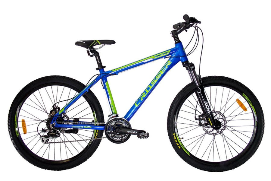 Crosser Banner 26 NEW - алюминиевый горный велосипед с 24 скоростями, переключателем Acera и вилкой с блокировкой хода по суперцене!