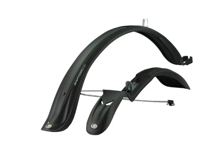 Комплект крыльев SIMPLA Raptor SDS защитит вас от грязи и брызг во время езды на велосипеде. Модель универсальна, подходит как для вилок с амортизатором, так и без. Прочный и гибкий пластик, из которого изготовлены крылья, устойчивый к изломам и ударам. Заднее крыло оснащено металлическими дугами для надёжной фиксации.