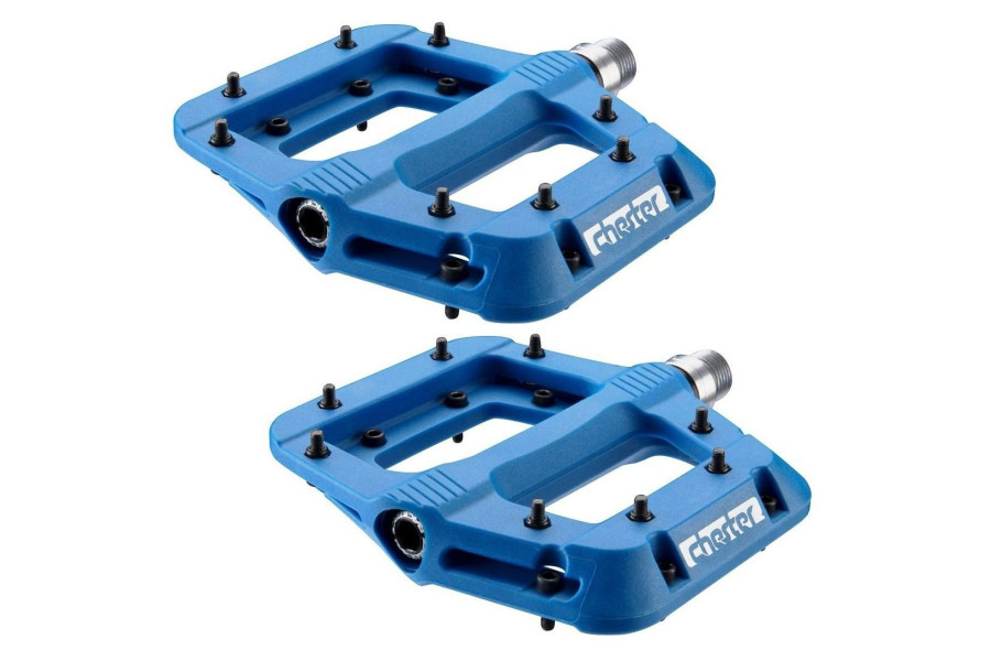 Педали Race Face Chester Blue- это надежная и долговечная модель из термопластичного композита с восемью сменными шипами с каждой стороны. Форма представленных педалей очень удобна, благодаря своему размеру 110 x 101 мм, имеет прочный и удобный упор для обуви с которым не соскальзывает нога при нестандартных ситуациях. Модель Chester не боится больших нагрузок и ударов, поскольку рассчитаны на агрессивные стили катания и имея небольшой вес в 360 грамм, очень популярны среди пользователей горных велосипедов.