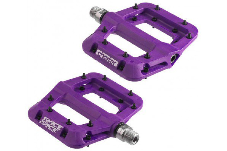 Педали Race Face Chester Purple - это надежная и долговечная модель из термопластичного композита с восемью сменными шипами с каждой стороны. Форма представленных педалей очень удобна, благодаря своему размеру 110 x 101 мм, имеет прочный и удобный упор для обуви с которым не соскальзывает нога при нестандартных ситуациях. Модель Chester не боится больших нагрузок и ударов, поскольку рассчитаны на агрессивные стили катания и имея небольшой вес в 360 грамм, очень популярны среди пользователей горных велосипедов.