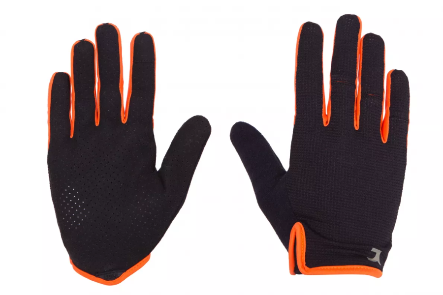 На ладони ткань усилена для износостойкости, а также предусмотрены прорезиненные вставки для надежного сцепления. На указательном пальце размещена вставка для управления сенсорными экранами. Благодаря застежке-липучке перчатки надежно фиксируются и плотно облегают руку.