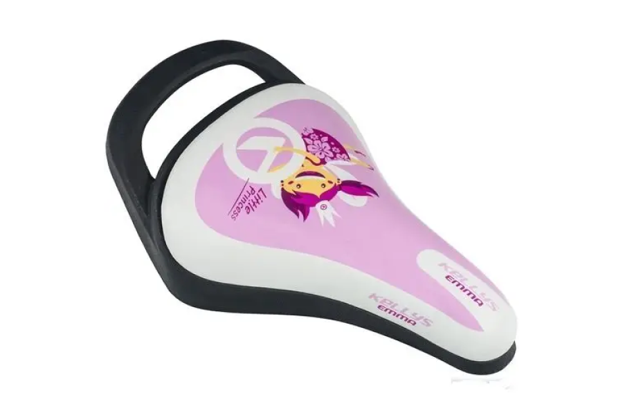 Дитяче сідло KLS Emma 018, pink - оновлена модель комфортного сідла для дитячих велосипедів. У задній частині розташована ручка для страховки дитини під час руху. На рамках нанесено шкалу для точного регулювання.