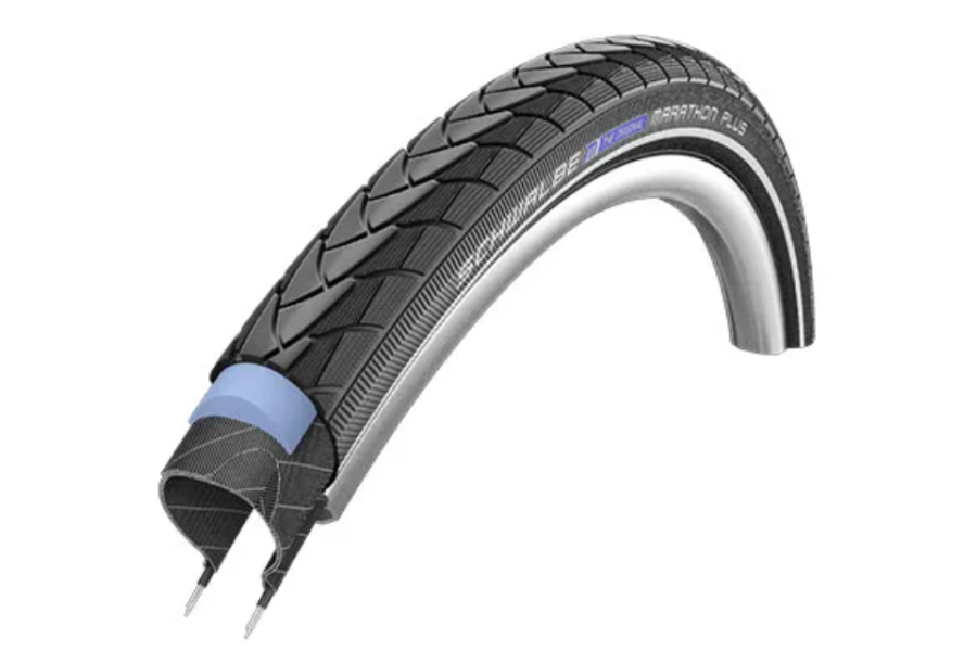 Покришка Schwalbe MARATHON PLUS - для міста та туризму оснащена максимальним рівнем захисту від проколів, тому має велику популярність. Завдяки динамічному малюнку протектора набирати і утримувати швидкість не складно. Шина відмінно працює на асфальтованому покритті та укоченій ґрунтовці, впорається також з короткочасними виїздами на легке бездоріжжя. Можна встановити електровелосипед зі швидкісним режимом до 25 км/год. За захист від проколів відповідає спеціальний 5-мм шар SmartGuard із переробленої гуми – він захищає навіть від проколів кнопками. Посилені бічні стінки збільшують термін служби шини: гума не "старіє", тому шина служить довше навіть при експлуатації при низькому тиску. Schwalbe MARATHON PLUS - ідеальний вибір, якщо ви шукаєте міцну, довговічну та стійку до проколів покришку.