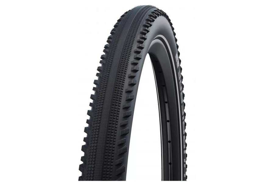 Універсальна покришка Schwalbe HURRICANE - популярна серед власників гірських велосипедів. Можна встановити на електровелосипед зі швидкісним режимом до 50 км/год. Невисокий, але чіпкий протектор забезпечить хороше зчеплення на твердому дорожньому покритті, а плоска центральна доріжка гарантує низький опір коченню. Бічні блоки, що виступають, відповідають за зчеплення на гравії та ґрунті, а також ефективно працюють на мокрих дорогах. Шипи розташовані так, щоб утримувати колесо при поворотах, що підвищує контроль над велосипедом.