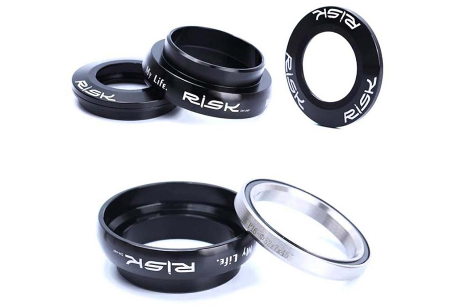 Рульова колонка 1,1 / 8 "-1,5" Al RISK DH-44F - призначена для установки вилок з конусним штоком в рами з прямим рульовим стаканом 44 мм. Стандарт для рам: 1-1/8" напівінтегрована 44мм. Діаметр штока вилки: 28.6 мм верх і 39.8 мм низ. Діаметр чашок посадковий (верх-низ): 44 мм. Посадкова висота чашки: верх 4 мм і низ 9мм. Розміри промпідшипників: верхній 41мм з висотою 6,5, нижній 52мм з висотою 7 мм. Матеріал: чашки алюміній сплав 7075, підшипники сталь. Вага: 140г. Колір: чорний. Тип підшипника: Промислові підшипники.