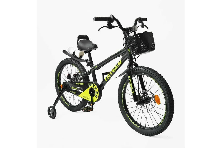 Велосипед Corso Tayger 20 - преміум новинка від торгової марки CORSO. Легкий, зручний і практичний сучасний дитячий велосипед. Рама велосипеда зроблена з високоміцного алюмінію, що робить її легкою і практичною, комплектація якісним обладнанням! Ексклюзивний дизайн "CORSO" - унікальне глянсове фарбування.