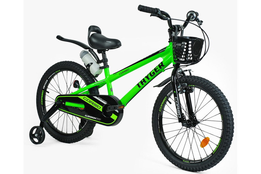 Велосипед Corso Tayger 20 green - преміум новинка від торгової марки CORSO. Легкий, зручний і практичний сучасний дитячий велосипед. Рама велосипеда зроблена з високоміцного алюмінію, що робить її легкою і практичною, комплектація якісним обладнанням! Ексклюзивний дизайн "CORSO" - унікальне глянсове фарбування.