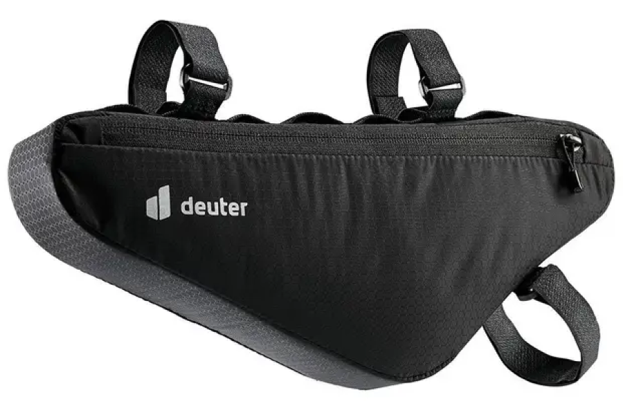 Велосумка DEUTER Triangle Front Bag 1.5 - тонка сумка з каркасом на блискавці, в ній інструменти і аптечка завжди знаходяться під рукою. Світловідбивні принти 3M. Надійно кріпиться трьома ременями на липучці в трикутнику задньої рами.