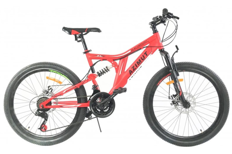 Azimut Blackmount 26 D - Двухподвес аматорского уровня, для тех, кто только хочет понять, нужен ли ему задний амортизатор. Чаще всего такие велосипеды выбирают те, кто предпочитает комфорт скорости или подростки из-за необычного дизайна. Такая конструкция действительно способна обеспечить более мягкую езду, хотя и в ущерб скорости, к тому же Вам придется тратить значительно больше энергии, передвигаясь на таком аппарате. Подросткам же, которые хотят попробовать выжать из велосипеда максимум, при этом не щадя сам велосипед, задний амортизатор поможет избежать разного рода повреждений важных узлов, таких как оси или колеса.